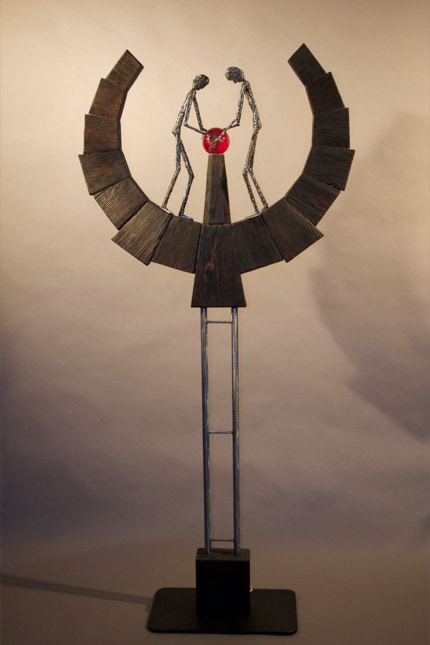 Geschweißter Stahl, gebranntes Holz, LED-Beleuchtung