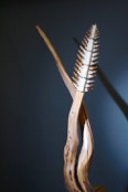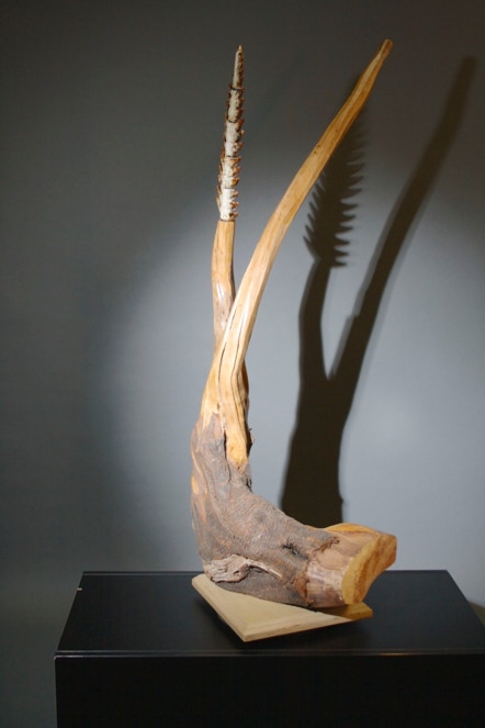 Wurzel eines Pflaumenbaumes, geschliffen, geölt und gewachst, mit Keramik-Applikation