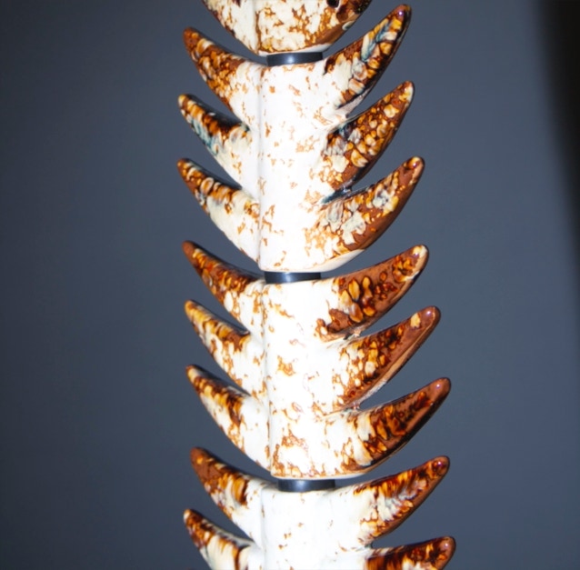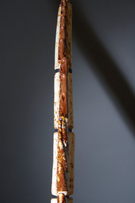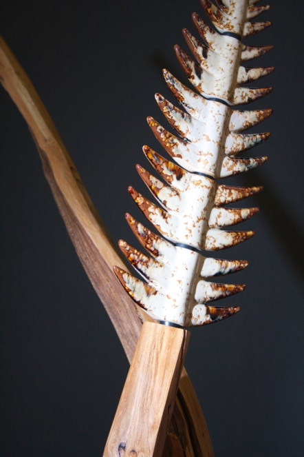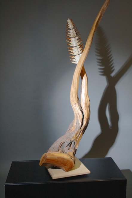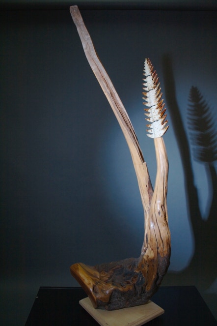 Wurzel eines Pflaumenbaumes, geschliffen, geölt und gewachst, mit Keramik-Applikation